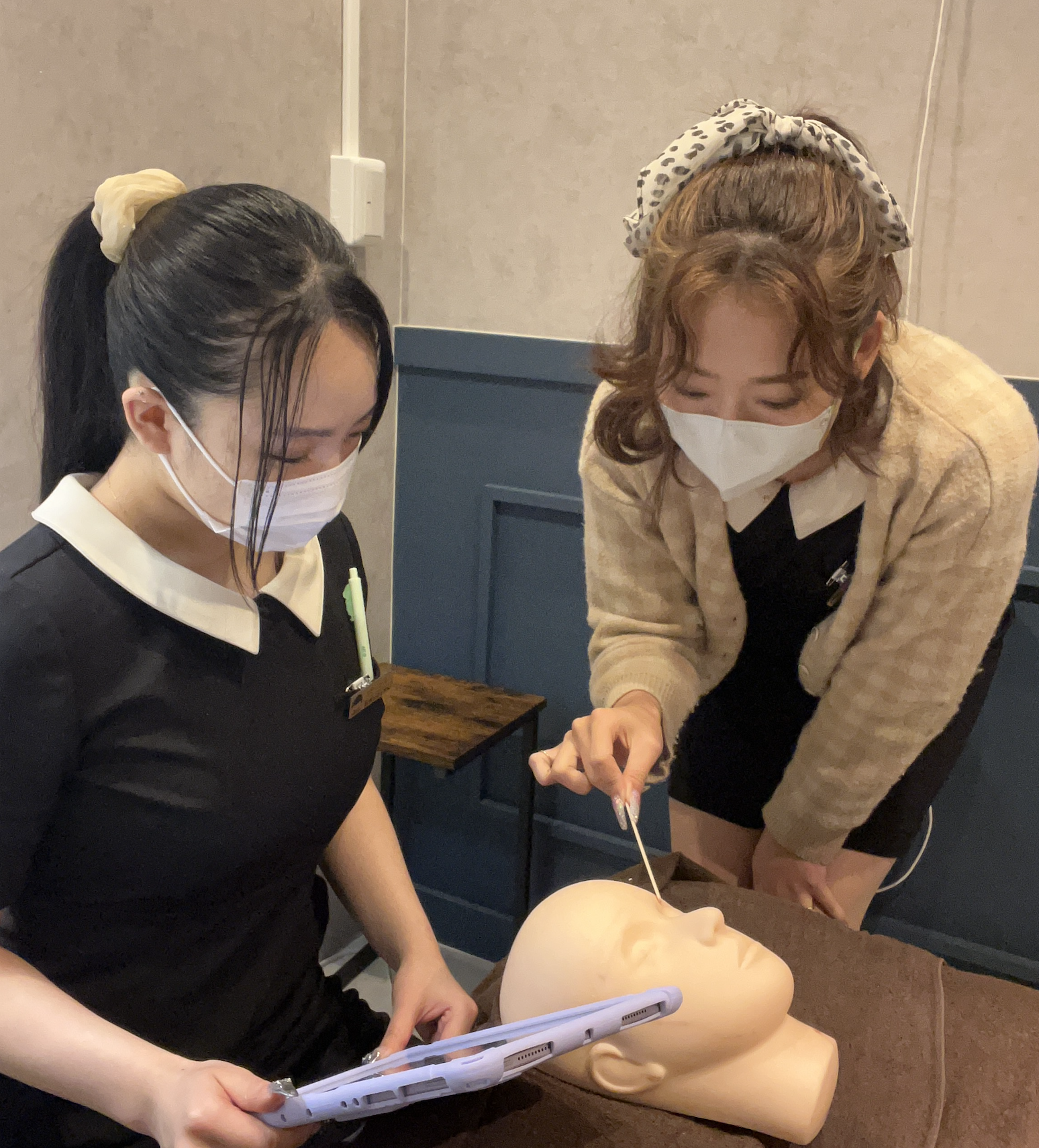 マニュアルを使って基礎知識を学びながら、施術技術をイチから覚えていきます。